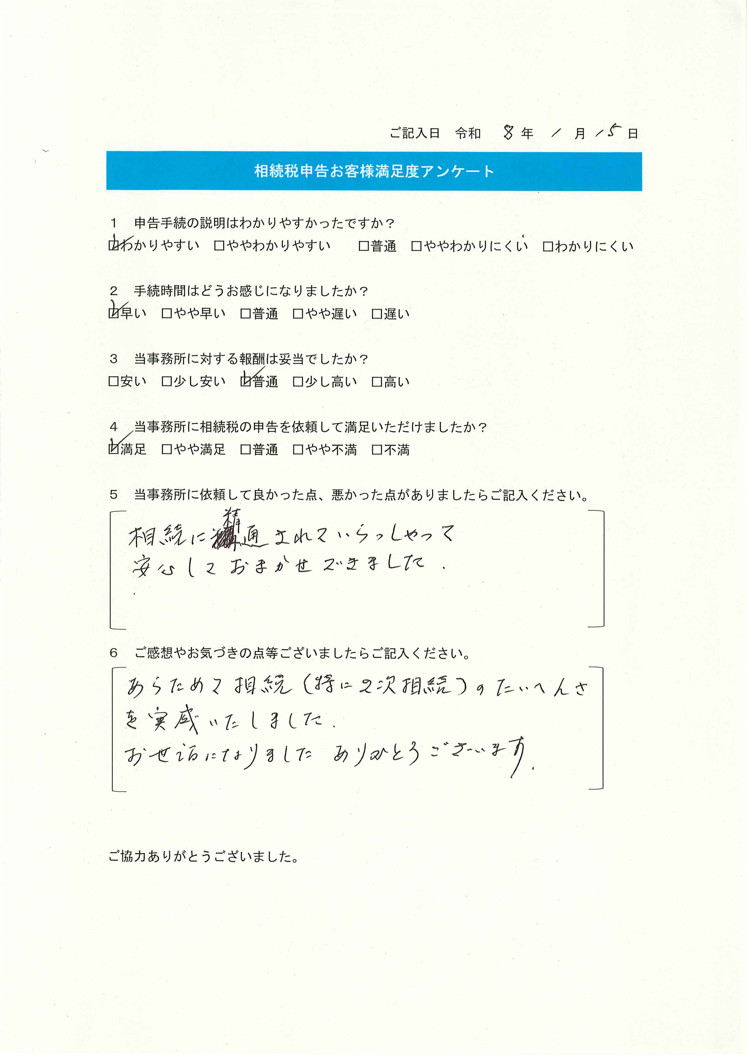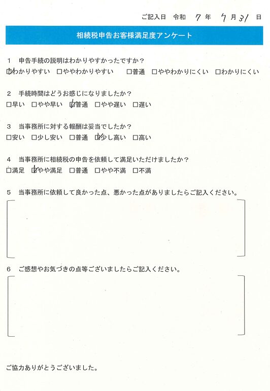 貴事務所に依頼し、2か月半で相続税を納付する事が出来て本当に助かりました。(2025年10月3日杉並区・女性...