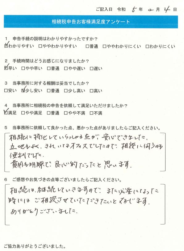 相続は継続していきますので、また必要になった時にはご相談させていただきたいと存じます。