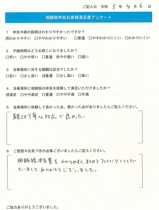 相続税申告書をわかりやすく、まとめてファイリングしてくださいまして、ありがとうございました。