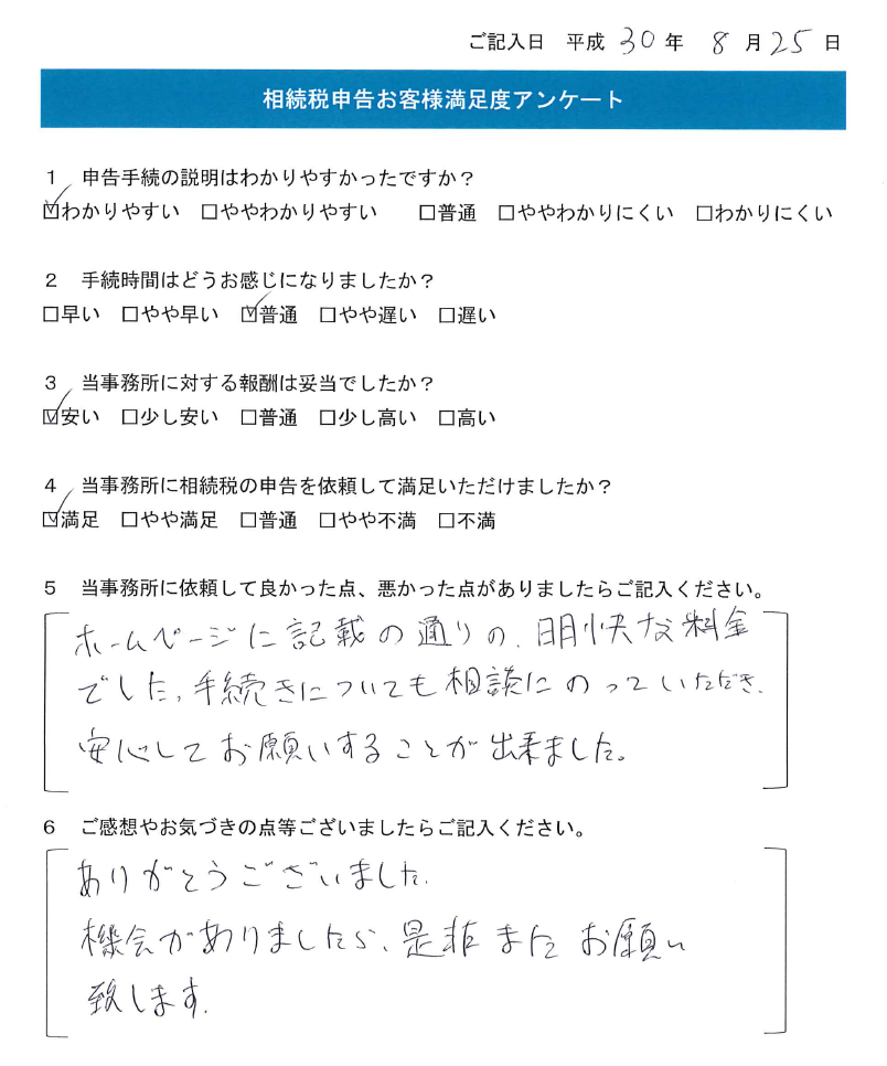 手続きについても相談にのっていただき安心してお願いすることが出来ました。