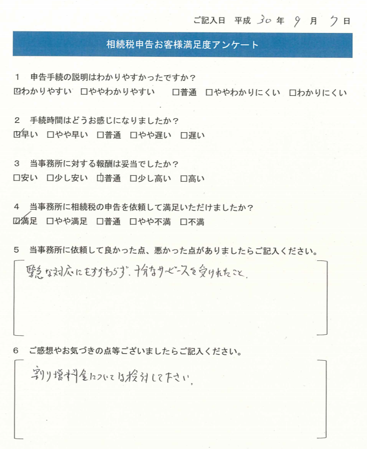 Q4.当事務所に相続税の申告を依頼して満足いただけましたか?
