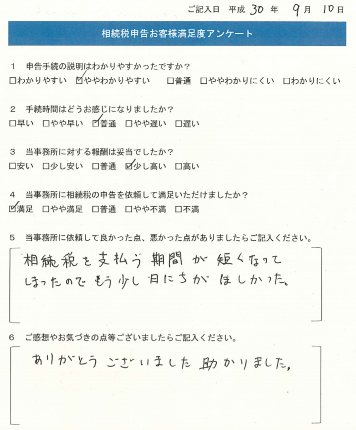 相続税を支払う期間が短くなってしまったのでもう少し日にちが欲しかった。
