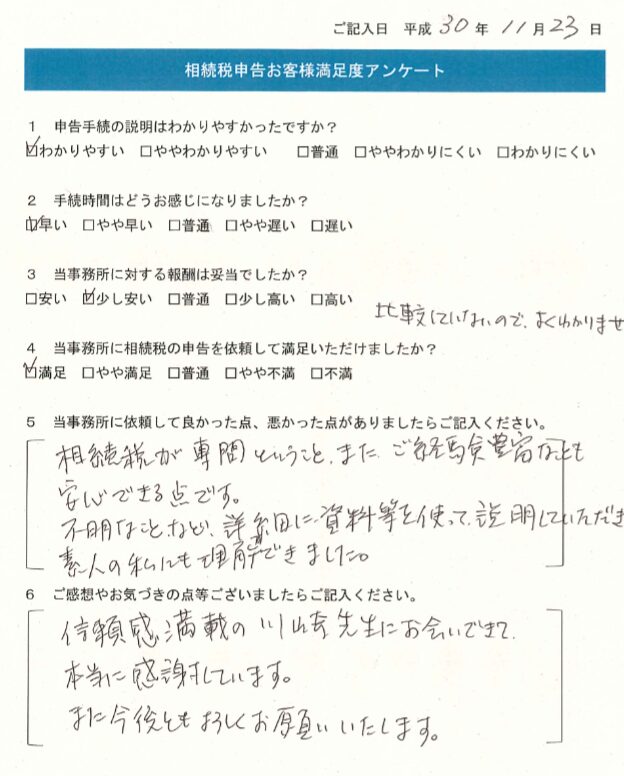 相続税が専門ということ、また、ご経験豊富なことも安心できる点です。