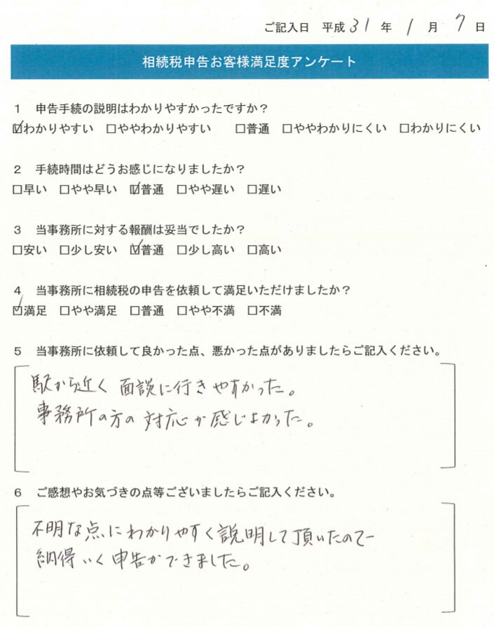 不明な点にわかりやすく説明して頂いたので納得いく申告ができました。