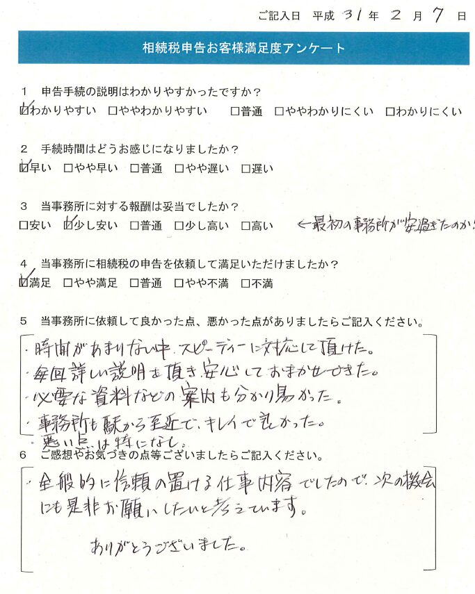 ・時間があまりない中、スピーディーに対応して頂けた。