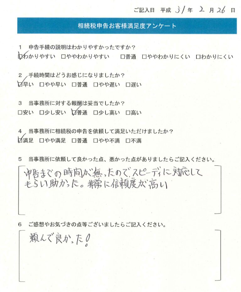 申告までの時間が無かったので、スピーディに対応してもらい助かった。