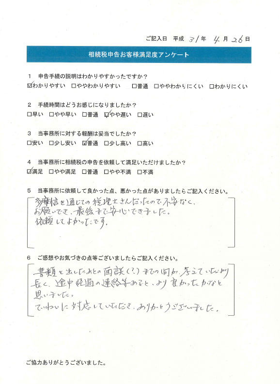 ていねいに対応していただき、ありがとうございました。