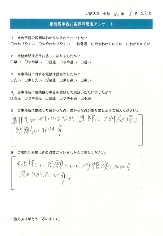 期限がせまっているなか、迅速にご対応頂き感謝しております。