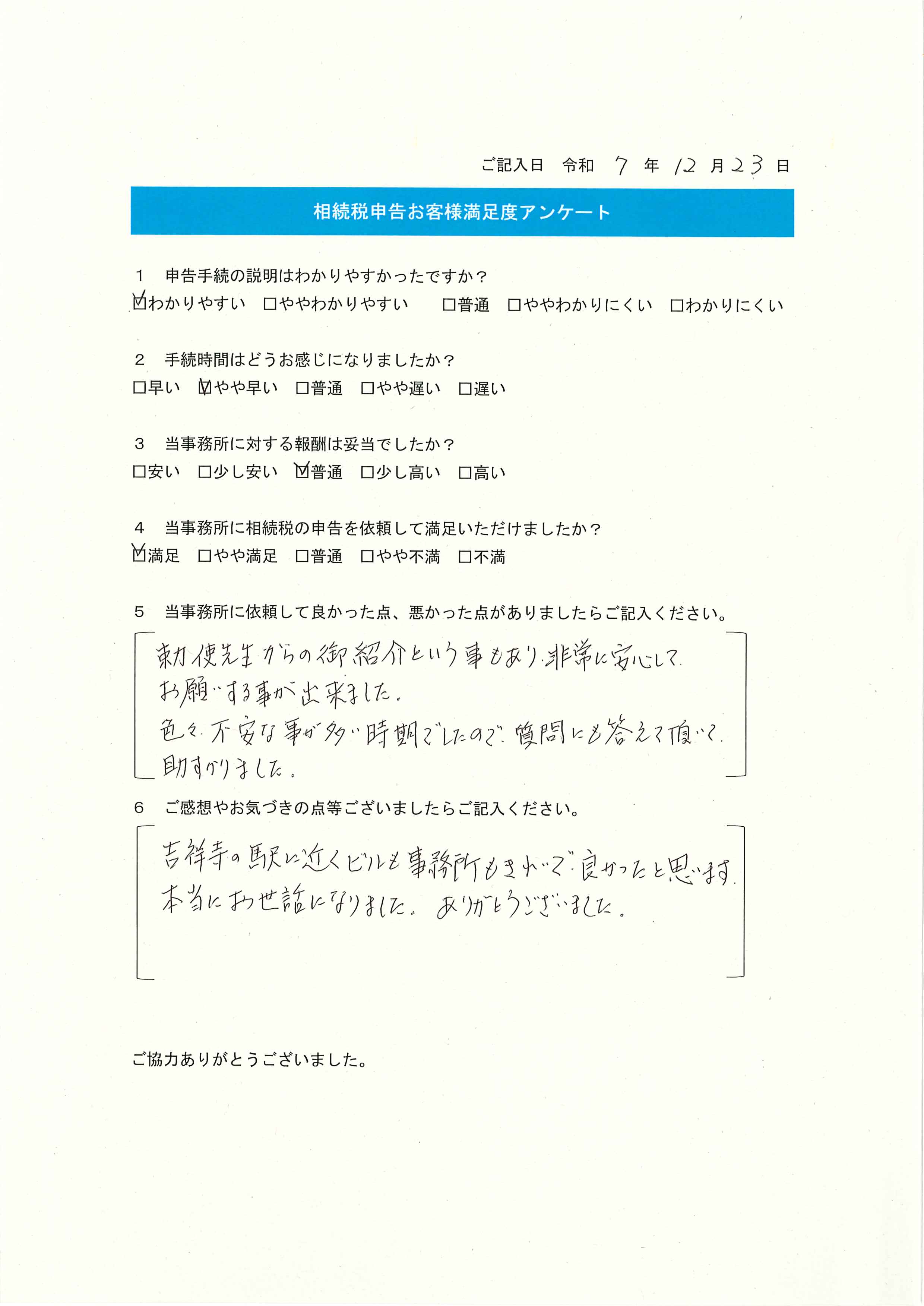 Q5.当事務所に依頼して良かった点、悪かった点がありましたらご記入ください。