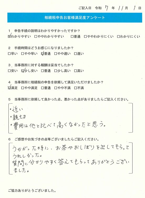 質問に分かりやすく答えてもらってありがとうございました。(2025年11月1日練馬区・女性)