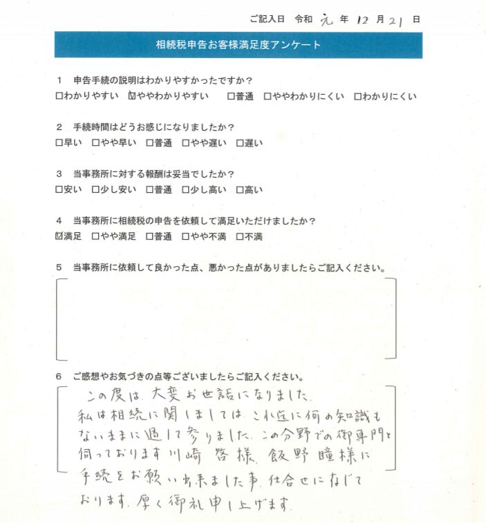 Q4.当事務所に相続税の申告を依頼して満足いただけましたか?