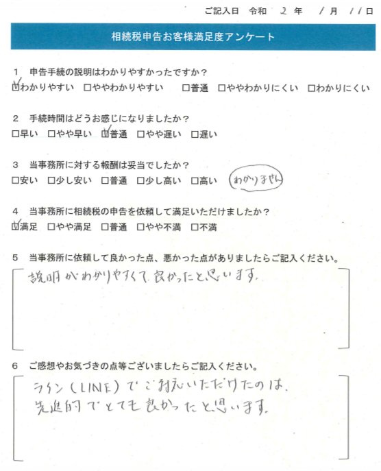 ライン(LINE)でご対応いただけたのは、先進的でとても良かったと思います。