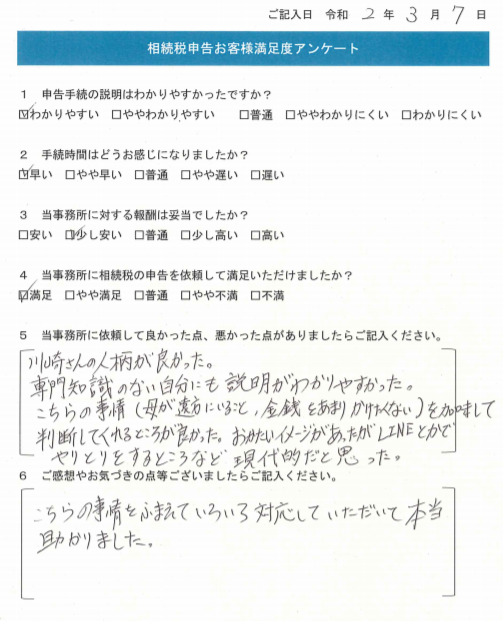 こちらの事情をふまえていろいろ対応していただいて本当助かりました。