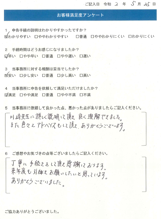 丁寧に手続きをして頂き、感謝しております。