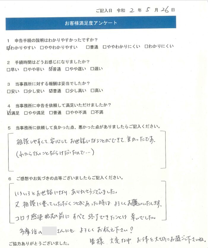 相談しやすくて、安心して、お世話になることができて、良かったです。