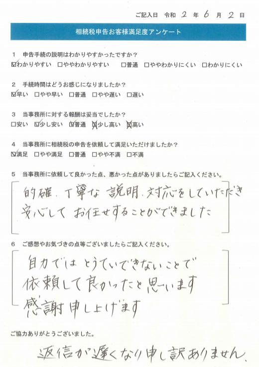 Q4.当事務所に相続税の申告を依頼して満足いただけましたか?