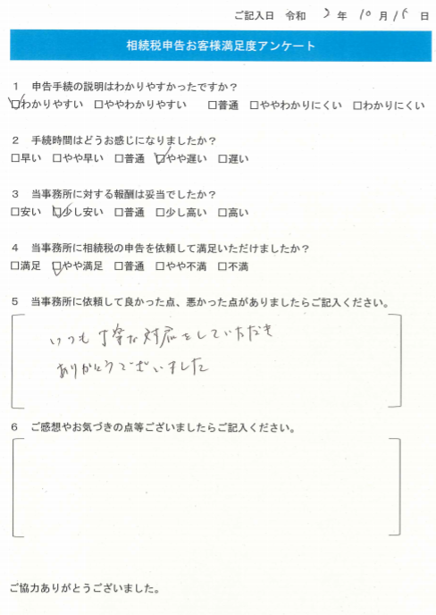 いつも丁寧に対応をしていただきありがとうございました