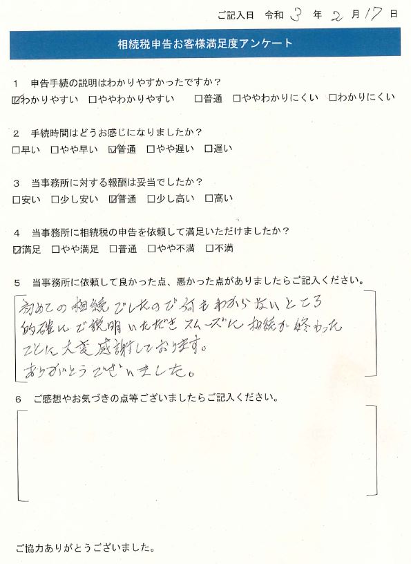的確にご説明いただきスムーズに相続が終わったことに大変感謝しております。