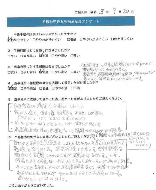 はじめて相続手続きをしましたが、いろいろ教えていただいて勉強になりました。