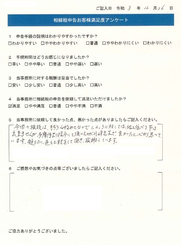 Q4.当事務所に相続税の申告を依頼して満足いただけましたか?