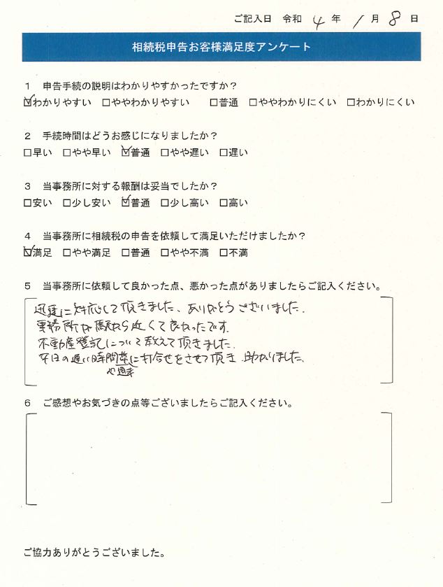 Q4.当事務所に相続税の申告を依頼して満足いただけましたか?