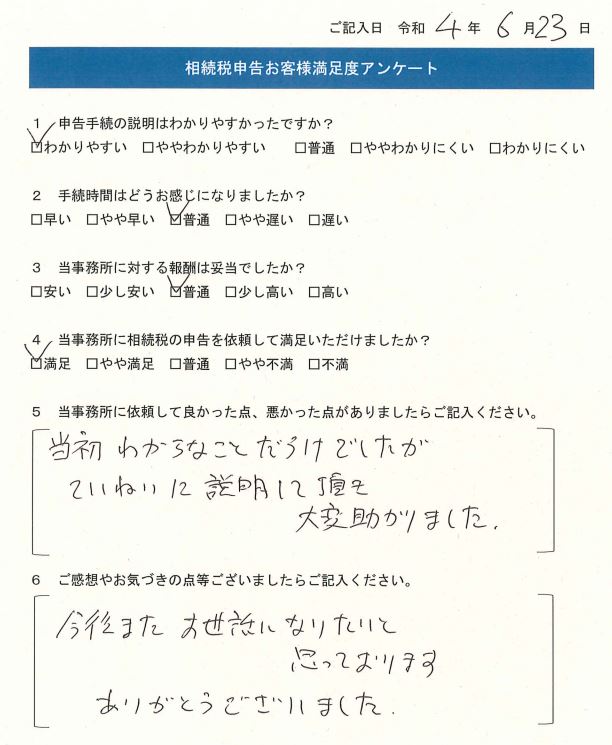 Q4.当事務所に相続税の申告を依頼して満足いただけましたか?