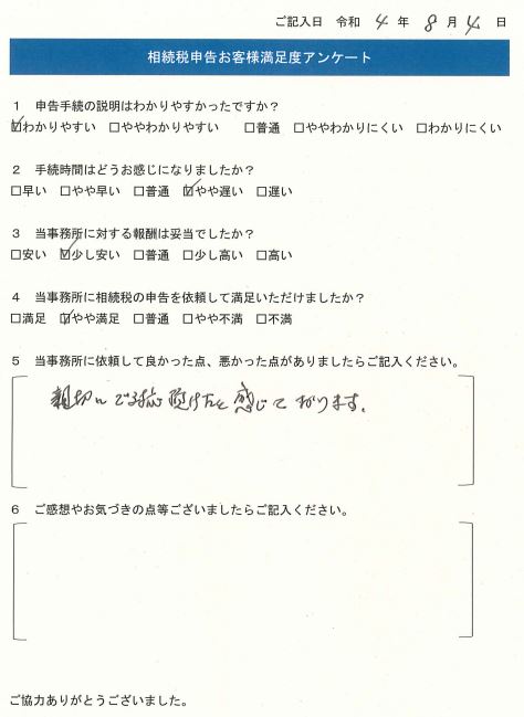 Q4.当事務所に相続税の申告を依頼して満足いただけましたか?