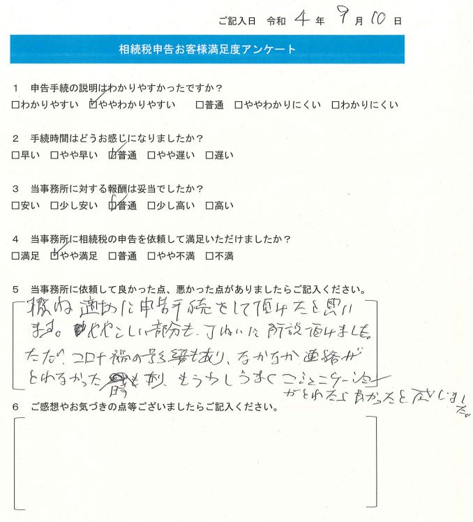 概ね適切に申告手続きをして頂けたと思います。ややこしい部分も、丁ねいに解説頂けました。