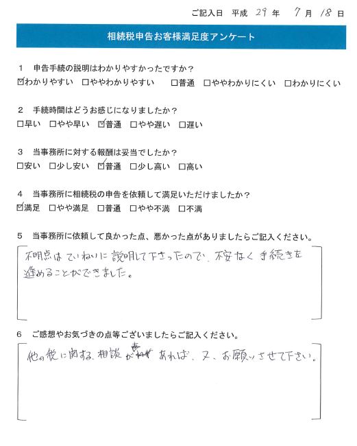 不明点はていねいに説明して下さったので、不安なく手続きを進めることができました。