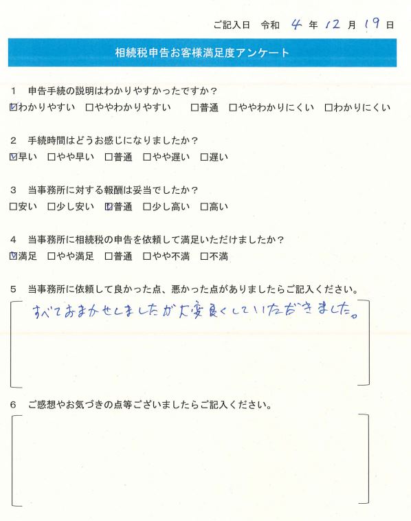 Q4.当事務所に相続税の申告を依頼して満足いただけましたか?