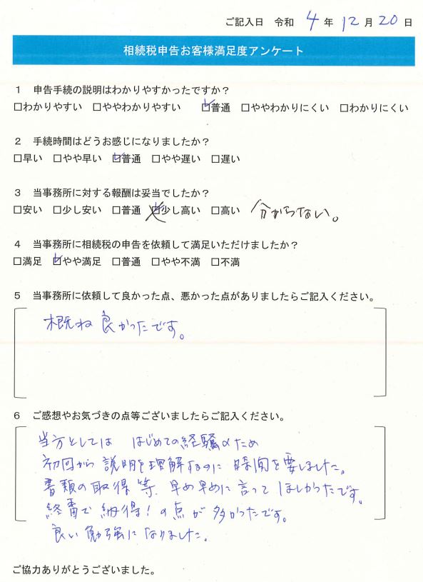 Q4.当事務所に相続税の申告を依頼して満足いただけましたか?