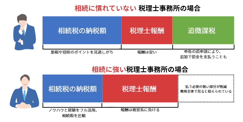 特に専門性が問われる「土地の評価」や「特例の適用判断」において、経験の少ない税理士では適正な評価ができないことがあります。結果として、本来払う必要のない税金を余計に納めてしまうリスクが発生します。